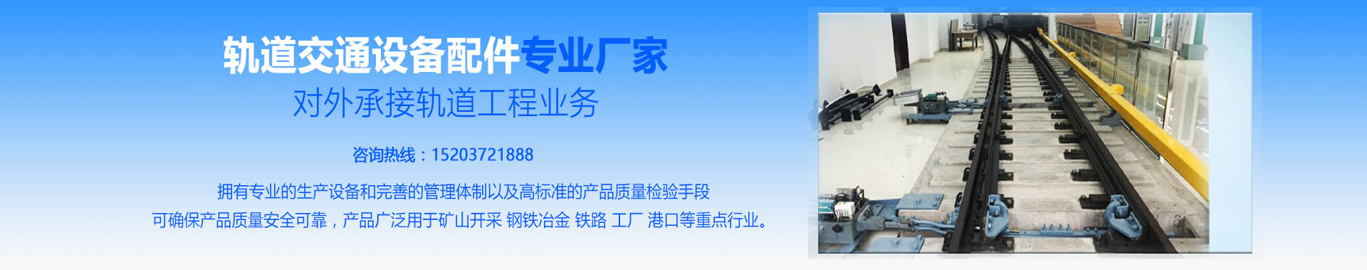 主營:電動轉(zhuǎn)轍機司控道岔輕重軌道岔礦用支護產(chǎn)品鐵路器材軌道工程